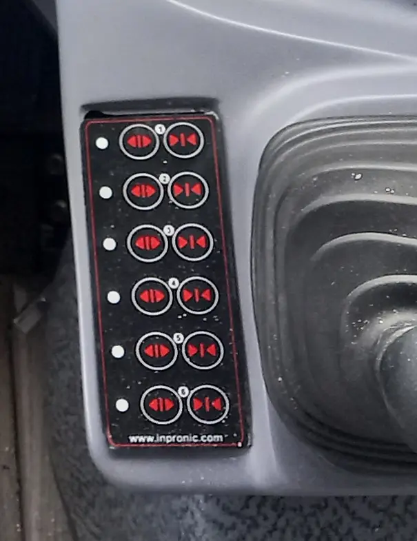 Botonera de apertura y cierre para puertas y compuertas muy al alcance del conductor.